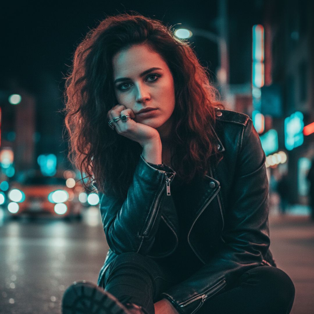 “Ultra-realistic close-up of a woman with wet hair under rainy streetlight, reflections on face, moody cinematic tones, perfect clarity, clear human natural face.” Keep the face exactly the same as in the uploaded image, if provided.