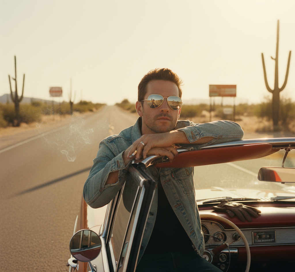 Ultra-realistic 8K cinematic portrait of a young man relaxing in an infinity pool at a rooftop penthouse, overlooking a breathtaking sunset city skyline. The warm, golden, and pink sky reflects perfectly on the water's surface, creating a dreamy mirror effect. He is wearing a stylish open-collar linen shirt, accessorized with a luxury watch and a minimal chain. His wet hair is naturally messy, glowing softly under the golden light. Behind him, glass railings and tropical plants add a refined lifestyle. Keep the face exactly the same as in the uploaded image, if provided.